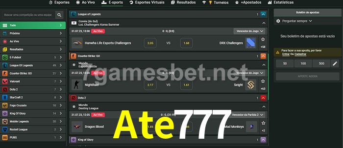 O Ate777 oferece uma grande seleção de opções de apostas em e-sports com probabilidades competitivas